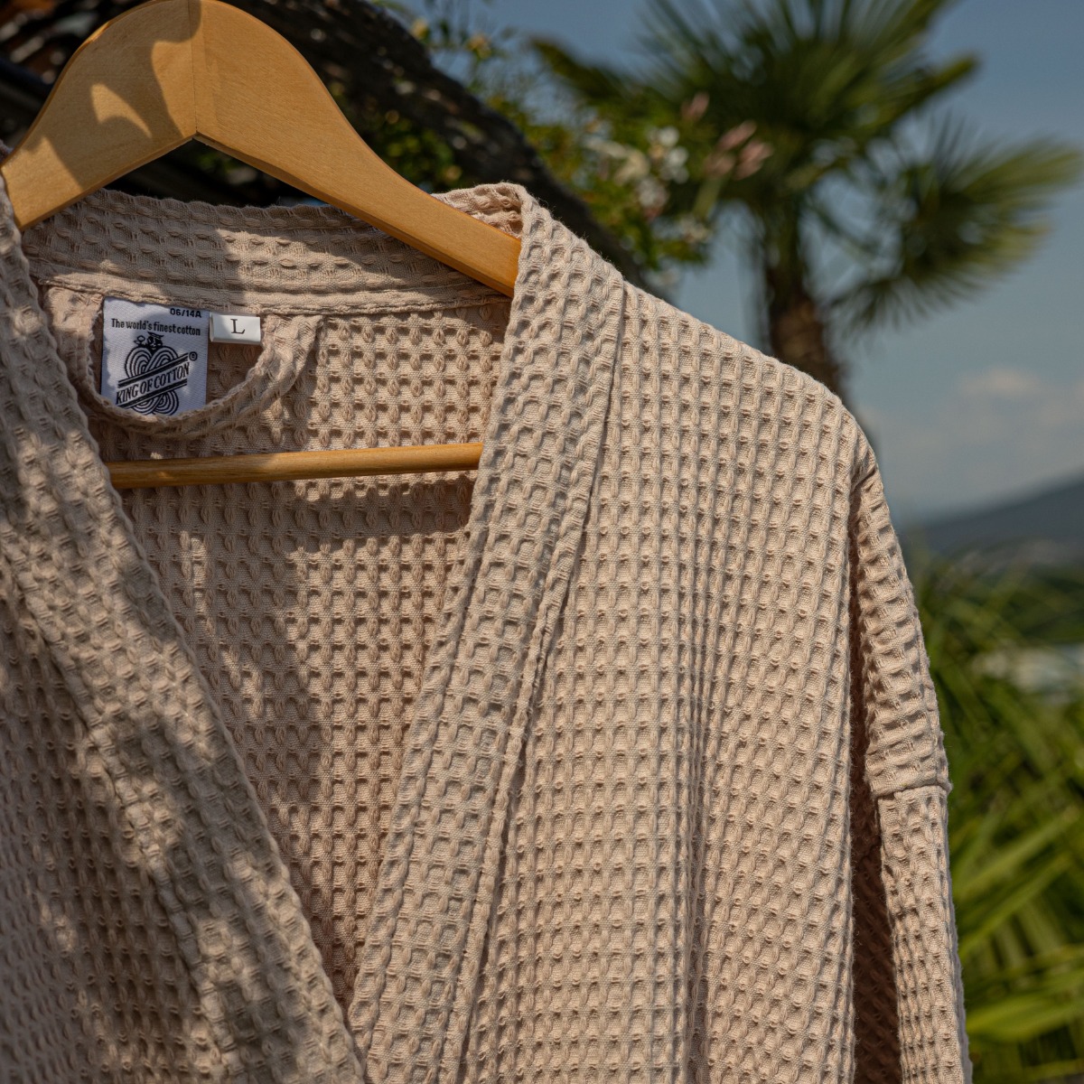 Szlafroki wykonane w Portugalii z wysokogatunkowej waflowanej bawełny. Wytrzymałe, eleganckie i wygodne. Fason kimono z paskiem i rękawami 3/4